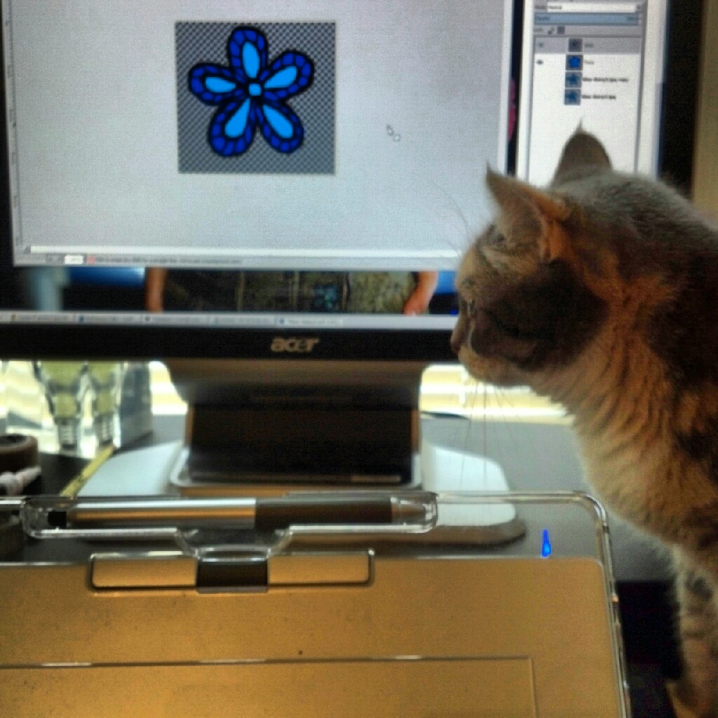 | Stretching the picture of Wash's chest patch so it lies flat for tracing |